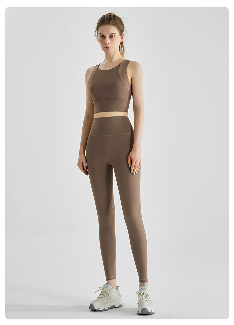 WXM236+CKM323--High-intensity sports bra women's tank top high waist hip lifting running trousers fitness yoga wear all-in-one cup